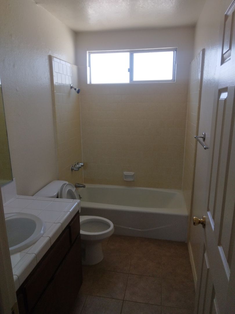 Large two bedroom apartment with two full bathrooms and an attached single-car garage. New tile throughout the living room, kitchen, hall and bathroom. Carpet in the bedrooms. Single story apartment with a backyard patio. Onsite shared laundry room. Month to month rental agreement - stay as long as you like or one year lease if you prefer. Property owner pays for water, sewer, and trash as well as provides an electric stove (fridge also if needed). Tenant pays for electricity and gas.