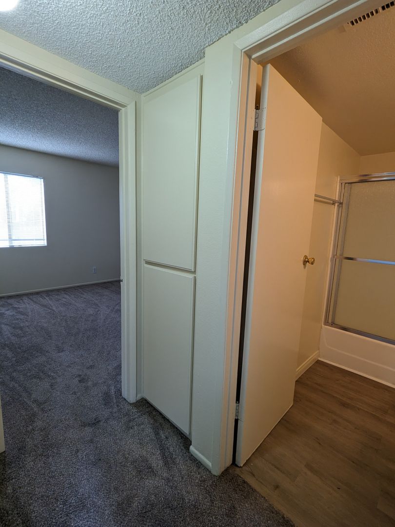 One bedroom apartment located upstairs in the La Sierra neighborhood of Riverside. Amenities include a gated entrance and shared laundry room. The unit is offered on a month-to-month rental agreement or up to a one year lease, so you can stay as long as you like. The unit comes with a dishwasher, gas stove, central heating and air, a parking spot, balcony, outdoor storage closet and an individual hot water heater (fridge available as well, if needed). Newer granite counter-tops in the kitchen and bathroom. The tenant is responsible for sewer, electric, and gas utilities. The property owner pays for water and trash. One small pet dog (under 25 lbs) or cat is allowed with an extra $50 monthly pet fee. To qualify, applicants must have a minimum 580 credit score through Experian with 70% of accounts paid as agreed, no bankruptcies within the last 12 months, and less than 3 items in collections (under $250 do not count). Gross monthly income must be at least $4,000.00 verified with recent pay-stubs and a bank account. Tenant insurance required. No smoking.